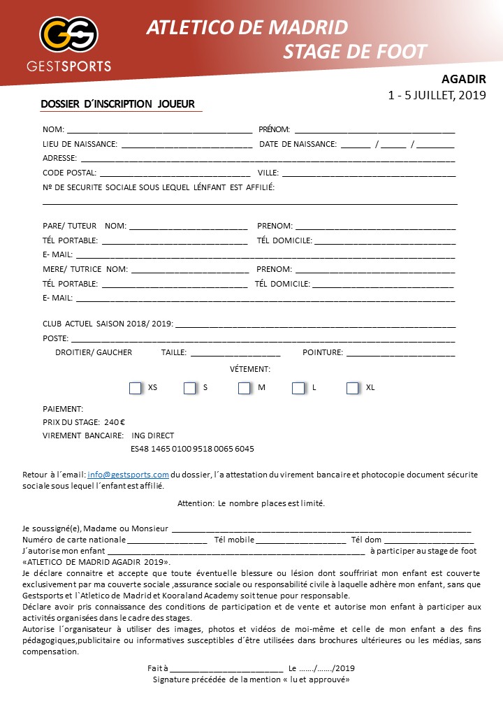 Atlético de Madrid,one of the biggest clubs in world soccer,and their academy staff travel to Agadir in July to host a soccer camp between 1st – 5th.